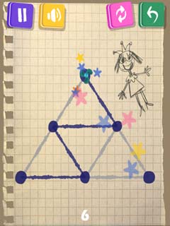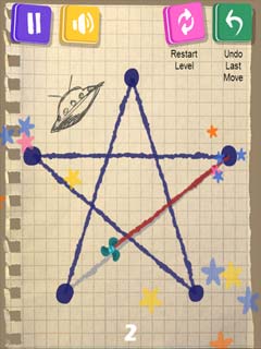 Doodle Connect is the perfect game to pass the time. Attractive graphics in the popular doodle style, a simple concept and tricky puzzles await you! Tricky puzzles? How hard can it be to connect a couple of dots with a continuous line? But once you’ve tried, and failed, to draw the infamous “Santa’s House” a couple of times, you’ll know that the answer is: pretty hard. Starting with simple shapes, the aim is to complete almost fifty levels of increasingly complex pictures – your head will soon start to spin.