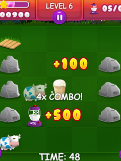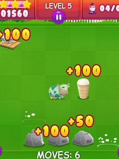 In Ice Cream Way you have to combine resources following the popular match 3 rules to create higher-value ones. You combine three cows to get milk, combine three milks to get a mixer and finally three mixer to get a tasty ice cream cone. You have to plan your moves ahead to find the optimal place for your tiles and combine them, as the new resource appears where you placed the last of the inferior resources. To make your task a bit easier, you can put a resources on hold in the storage locker and place it later. And if you happen to make a mistake, you are able to invest some of your points into extras that for instance allow you to clear a tile.