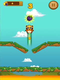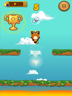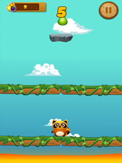 Let your cuddly little raccoon jump up to the sky in Jump Up! – the endless jumping game! This arcade-style platform jumper will test your reaction and timing skill! After the last volcanic eruption the jungle became a dangerous place to live! Jump higher and higher in order to escape the rising hot lava and survive as long as possible to increase your score! Jump quickly over crumbly rocks and try to avoid being crushed by the approaching platforms or to get hit by rockets. Collect fruits to unlock more of your furry friends or buy a head start for your next try! Play Jump Up! the free online game now and demonstrate your superior skill!