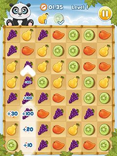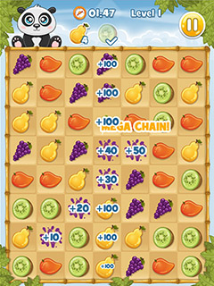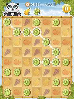 Collect delicious fruits and feed them to the cute panda in this free online game! Tap and hold to connect the fruits and release to finally collect them and let the panda enjoy the glorious, juicy fruitiness. You can connect fruits of the same type diagonally or in a straight line and should strive to to harvest the longest chains possible, as you receive bonus points and more time if you manage to connect more than five fruits at a time.In each level you have to collect a number of different fruits to make the panda happy and of course you have to be quick about it, because the time is ticking away fast.