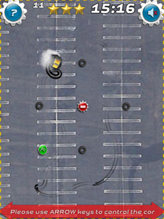 With Short Drift, you can really have a blast. Speed your car on smoldering, screeching tires through various obstacle courses that have been built just for you on a huge parking lot. Certain bumps will cost you valuable time, and some obstacles might even mean an immediate end to your wild journey. With luck, you’ll find some useful extras in the parking lot, which will allow you extra time or bestow you with a big speed bonus. This, however, provides the additional challenge of not losing control when going at your heightened speed, so that you end up banging into more obstacles or even flying off the track completely.